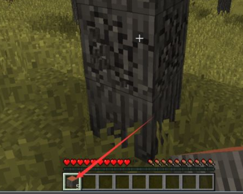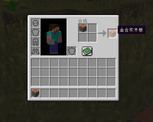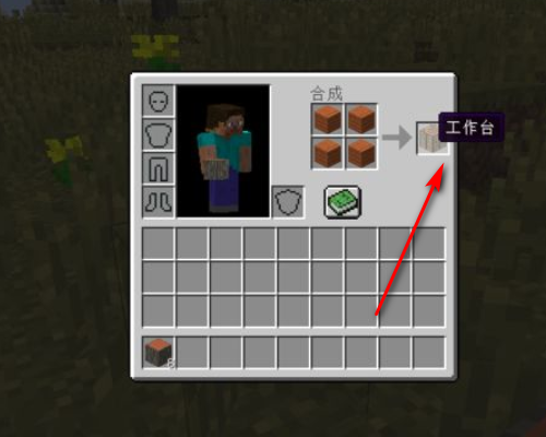 2、然後按「E」鍵打開背包,把一個木頭放在合成欄里可以分解出四塊木板。