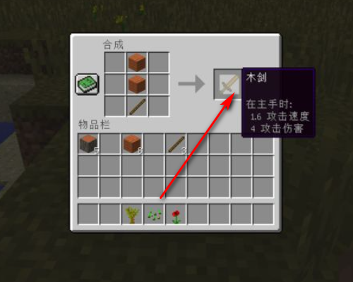 5、然後我們按照這個方式擺放木板和木棍,可以得到一個木劍。
