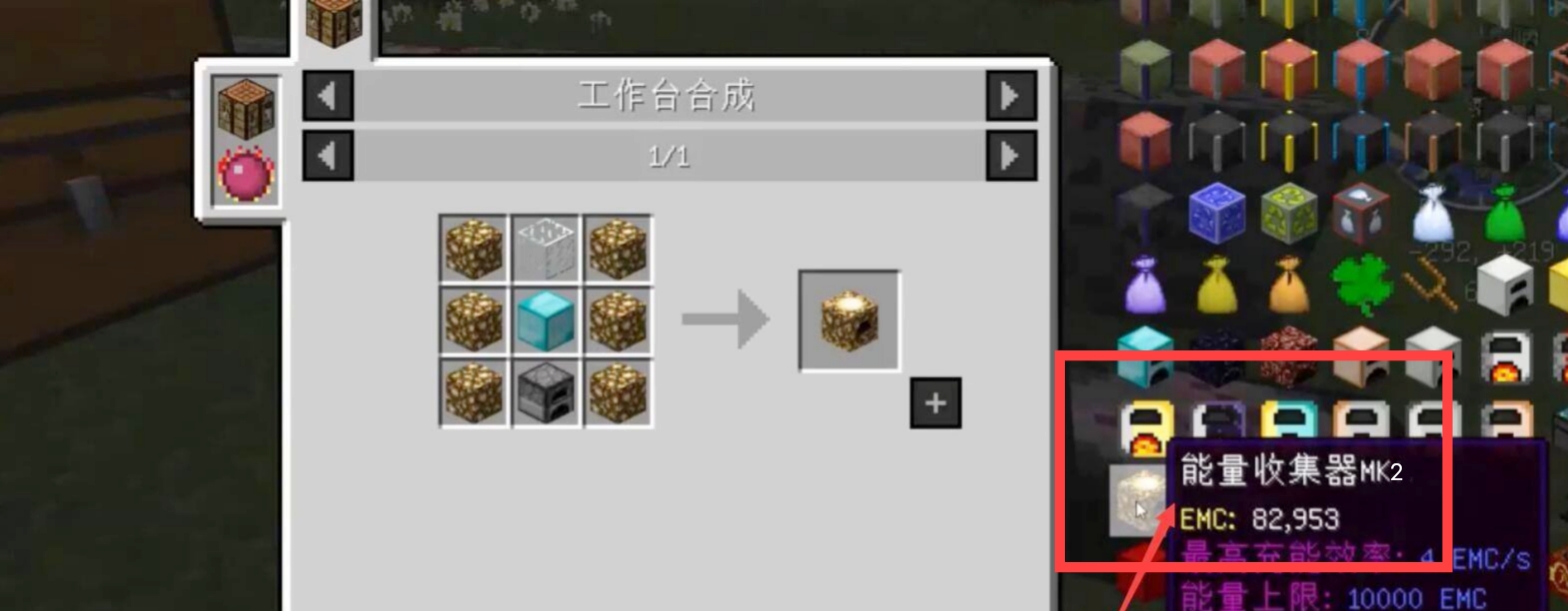 1、首先用鑽石塊、玻璃、熒石到工作台合成能量mk2凝聚器。