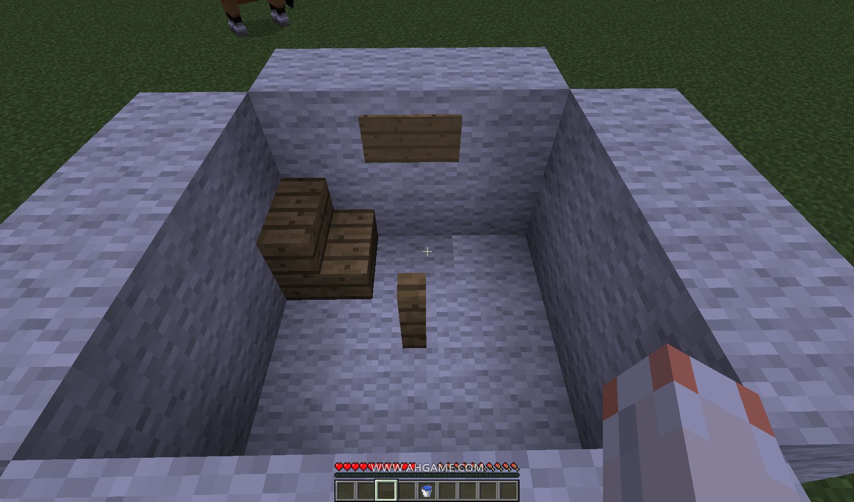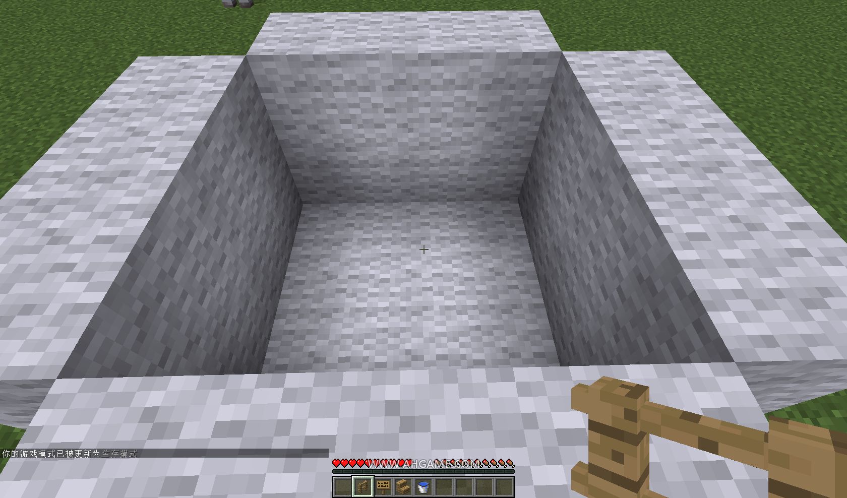 3、然後,像下圖所示的那樣搭好,使用掛機池時系統會默認玩家在游泳,所以玩家得開啟和平模式或飽食度比較滿,為了防止餓死。