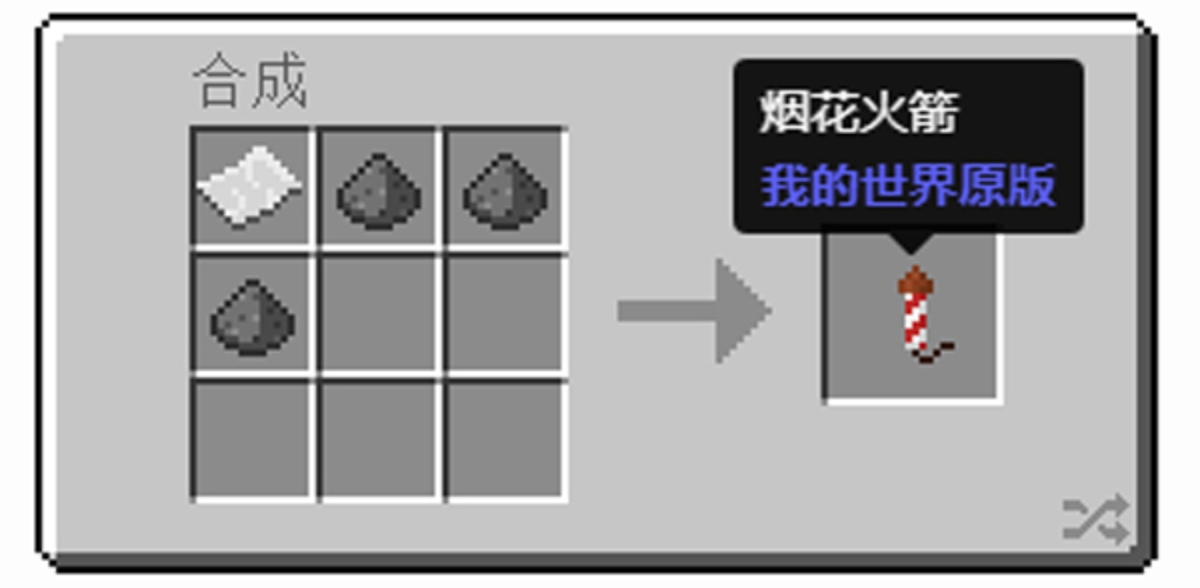 我的世界遊戲中的導彈其實就是煙花火箭這個道具,我們在工作台上使用1個紙和3個火藥就可以製作煙花火箭導彈啦。