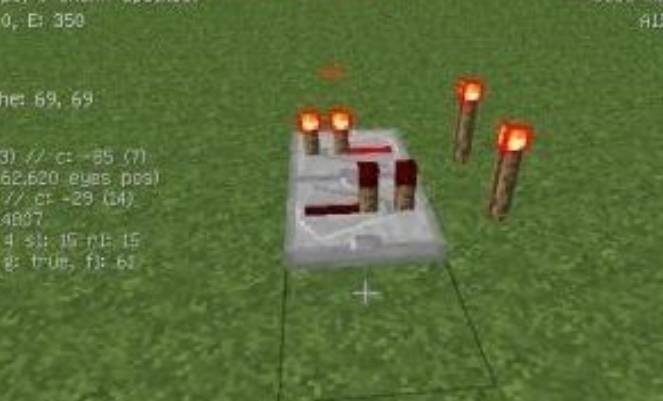 2.紅石火把:往前走,然後給紅石輸入15格強度信號,一般情況下在離我最近的那個紅石會沒有信號,但是紅石信號的強度完全不會影響信號傳遞的正常速度。