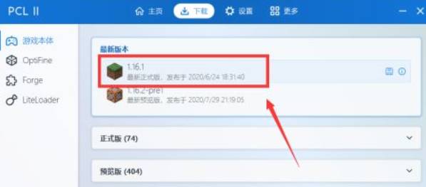 2.這時我們需要下載相應的版本客戶端,選擇是PCL2啟動器,點擊進入啟動器界面。