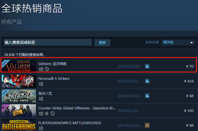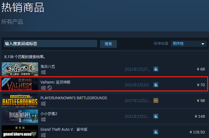 而目前在國區熱銷榜和全球暢銷榜上,《Valheim: 英靈神殿》的成績也相當傲人。