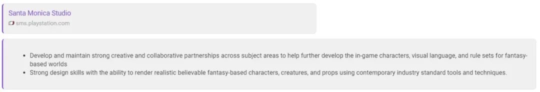 據外媒Gamingbolt報道,聖莫妮卡工作室最近又更新了他們的招聘信息,其中在高級角色概念設計師的信息中寫道:「發展並保持強大的跨學科領域的創造性和協作性夥伴關係,以幫助進一步開發游戲中的人物、視覺語言以及基於幻想世界的規則;具有很強的設計能力,能夠使用現代行業標准工具和技術,渲染真實可信的基於幻想的角色、生物和道具。」