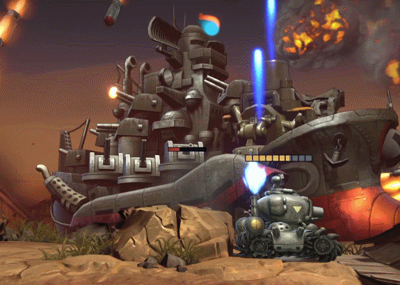 不只是我方角色,游戲對於敵方目標同樣也做了精心的還原,生動形象的小綠兵自不用說,各種戰車和飛機相比原作,在重製後給人更強的壓迫感,將柴油朋克風展現的淋漓盡致,比如這架曾經在原版一代第一關登場的大型轟炸機哲雪號。