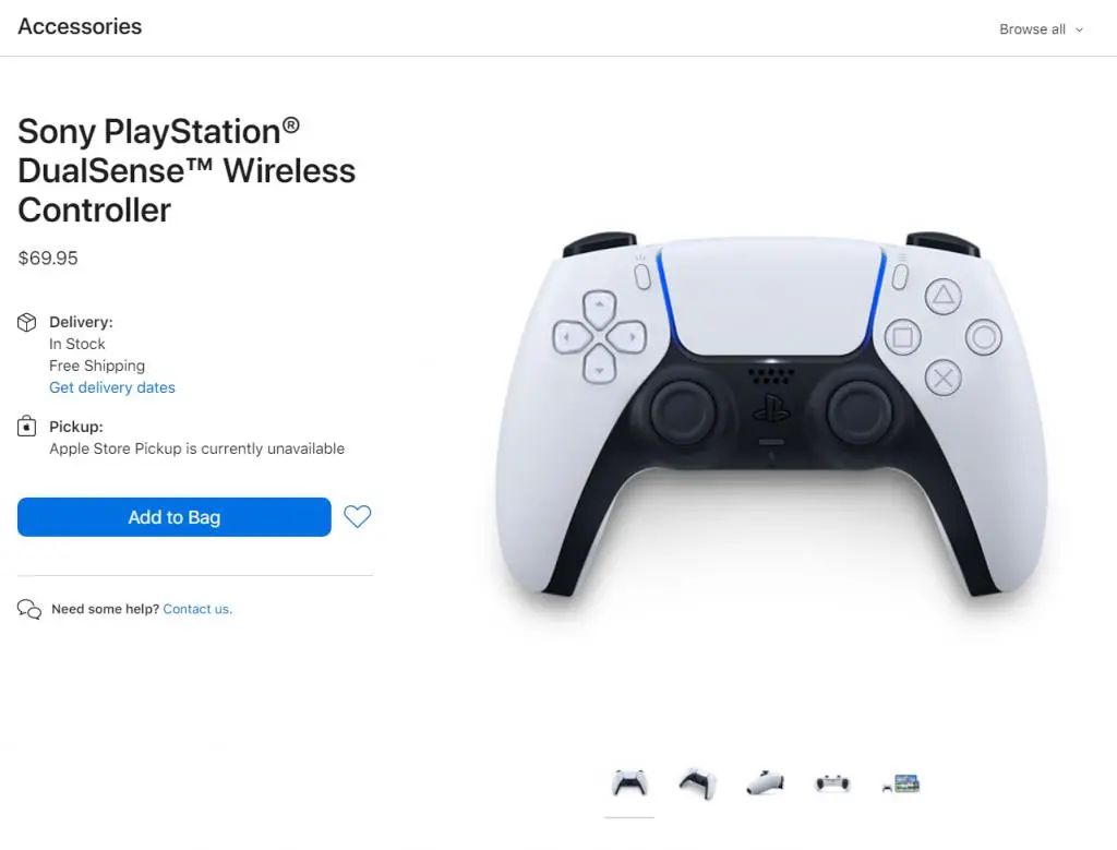 外媒 MacRumors 報道,蘋果公司最近開始通過其在線商店銷售白色的索尼 PS5 DualSense 無線遊戲控制器,定價與索尼官方一致,售價為 69.95 美元(約 450.48 元人民幣)。美國用戶今天下訂單預計將於下周交付。