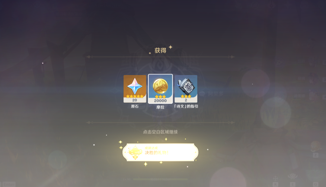 六、放進去角色後、點擊與角色交談便獲取獎勵,每個角色獲得20原石、2W摩拉、天賦書。