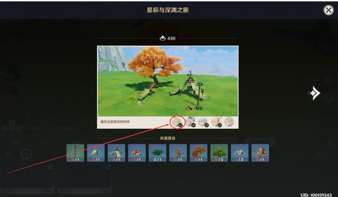 四、打開後便看到所需的擺設(如果有的擺設已經使用了,可以先拆下來用後再放回去,沒有的擺設只能買圖紙製作),和偏好該套裝搭配的同伴角色,