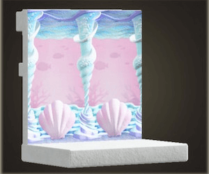 -人魚壁紙 | 材料:珍珠*2、鐘螺殼*2、沙錢*2、珊瑚*2、扇貝殼*2、寶螺殼*2