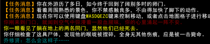 這個開篇最近我見了不少次。但《我來自江湖》不同的地方在於,MUD的高自由度在這種定番式開場里,就能體現出來了。