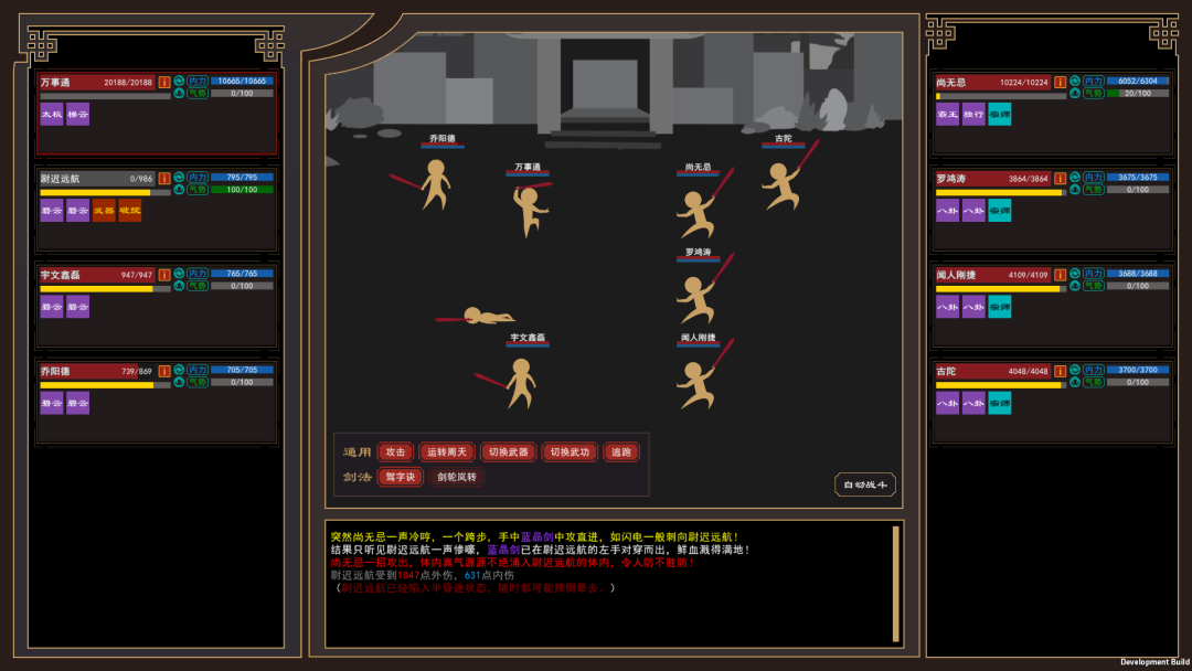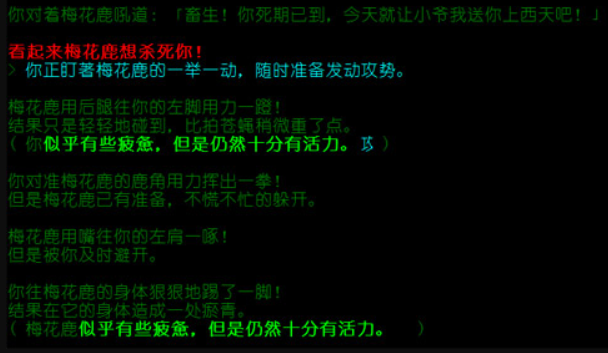 至於玩家能做的事情有沒有意義,MUD遊戲本身是不管的,意義只能由玩家自己找到。就像砍掉同門的頭並吃掉了這件事,從玩法上看毫無意義,但從角色扮演的角度就不一定了——我為了不讓自己砍頭的行為顯得太蠢,編出了一個故事:「看到同門被殺,本來就偏激的獨孤正奇異常悲痛,不顧夥伴阻攔,砍下死去的大師兄的頭,狠狠咬了一口咽進了肚子,發誓要帶著大師兄的一部分完成復仇」。