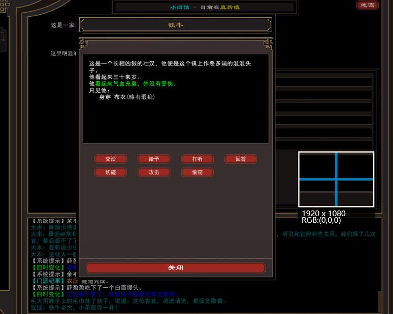 盡管《我來自江湖》有UI,可以用滑鼠(而不是輸入指令)操作,也不是網遊,但遊戲的核心還是MUD式的:用文字向玩家呈現遊戲內容。