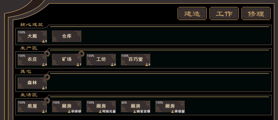 而且《我來自江湖》也不鼓勵玩家一直呆在家中種田。門派地產中的森林、礦場都有產量,消耗完了必須去其他城市買地,才能繼續搞生產。