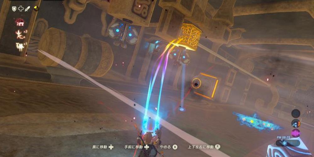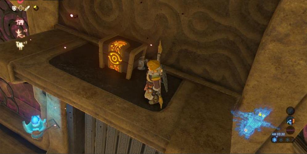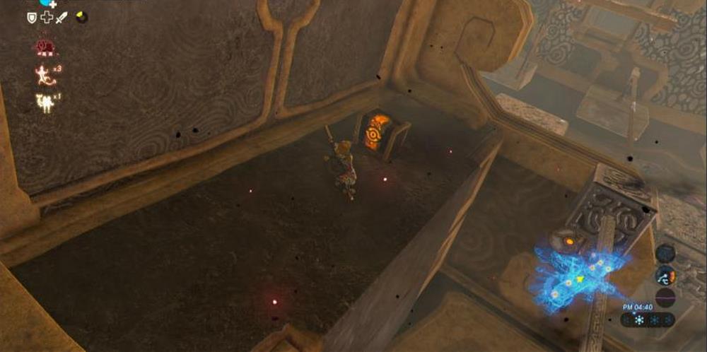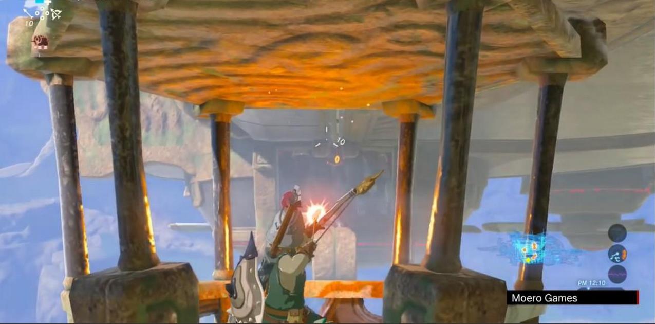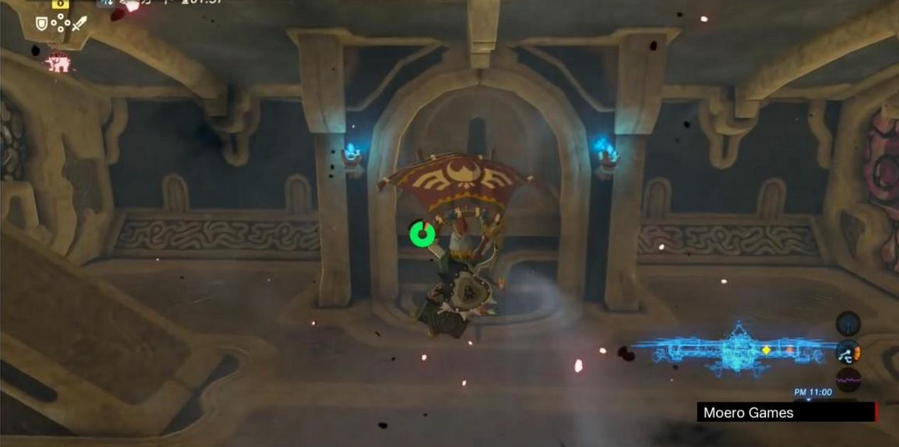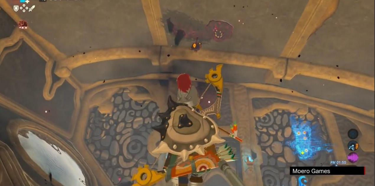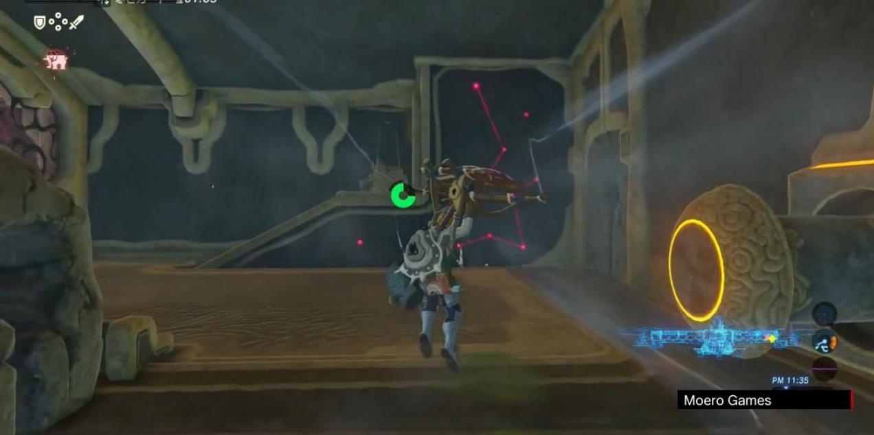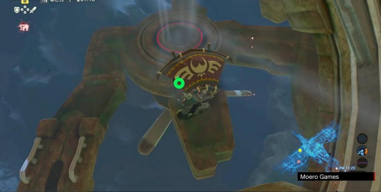 機關所在平台的頂部有一個寶箱,站到右翼盡頭,讓神獸左傾,跳起來乘滑翔傘可飛到那裡。寶箱中有一把騎士之弓。