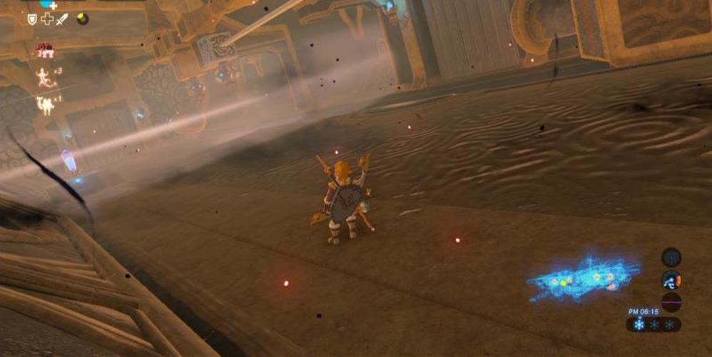再放一個炸彈,它會被封風吹到房間左側,此時引爆炸彈可以炸開房間內的石門。出現一個大鐵球。