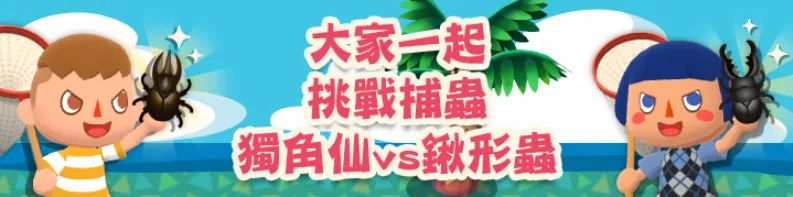 《動物森友會:口袋露營廣場》8月上旬的河畔乘涼活動已經結束,在中旬的釣魚大會到來之前,任天堂開啟了一項新的過渡期活動「大家一起挑戰捕蟲 獨角仙vs揪形蟲」。