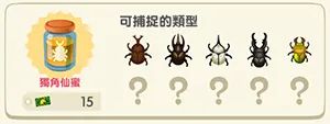 捕捉15隻獨角仙和鍬形蟲吧 | 鈴錢*1000 |