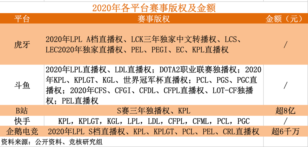 隨後的虎牙與斗魚獲得的A級版權,「套餐」內的是50個比賽日的直播和1路OB的製作權。