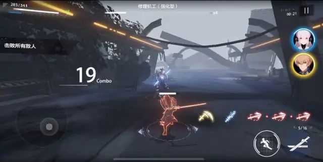 作為動作遊戲,戰雙在戰鬥方式上創新的採用了三消機制,普攻會獲得隨機的能量球,點擊能量球即可釋放技能,消除三連的能量球技能會增強,且能觸發連招,一旦你完美閃避,任一能量球都能觸發三消效果,這種創新無疑讓戰鬥變得更有深度。