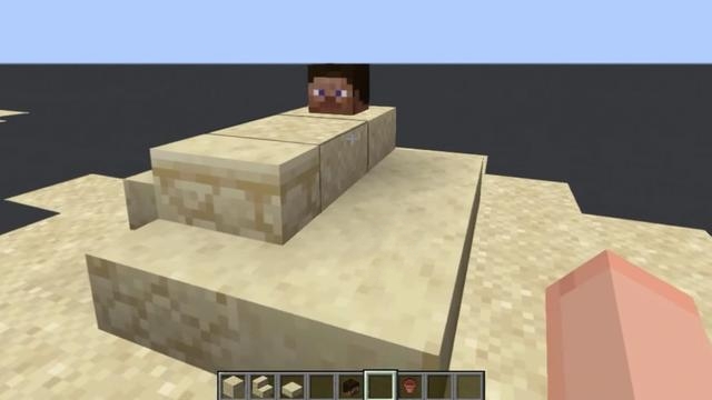 2、沙灘小人。在夏天沙灘玩耍的時候,經常喜歡將自己埋在沙灘當中,只露出一個頭。這個小設施依舊可以在遊戲中實現,當然使用使用生物頭顱就可以,在頭顱前面放置沙快。可以在沙漠中多放一個,一個個沙灘小人就誕生了。