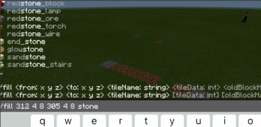 3、在另一端的末尾,再次輸入/tp ~ ~ ~,得知這里的坐標是305 4 8。並再次用石頭標記了一下