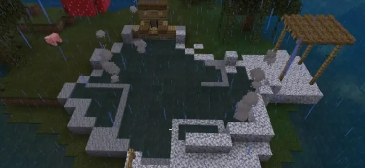 首頁 我的世界 問答 如何在我的世界裡造溫泉? 2022-09-06 一、在【我的世界】中先找到一塊空白地方,如下圖所示;二、沿著地形隨意發揮圍上一圈安石岩,如下圖所示;三、用木質製作一個出水口,裡面可以放砂輪裝飾,如下圖所示;四、開始倒水,給溫泉加上泉水,溫泉就建造完成了,如下圖所示。