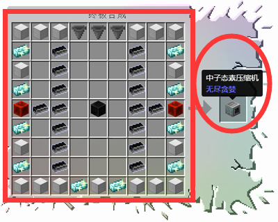 需要使用中子態素壓縮機,需要金屬或寶石放入後壓縮。放入的材料不同,獲得的奇點數量也不同,其中使用紅石壓縮出的奇點最多為500個。其中態素壓縮機需在終極工作台上製作,製作材料為17個鐵塊、3個漏斗、10個水晶矩陣錠、16個中子錠、2個紅石塊和1個中子態素塊。