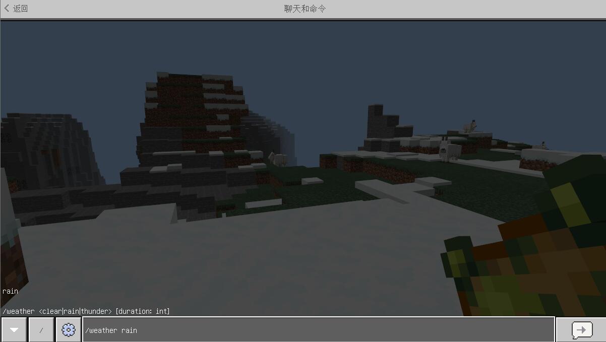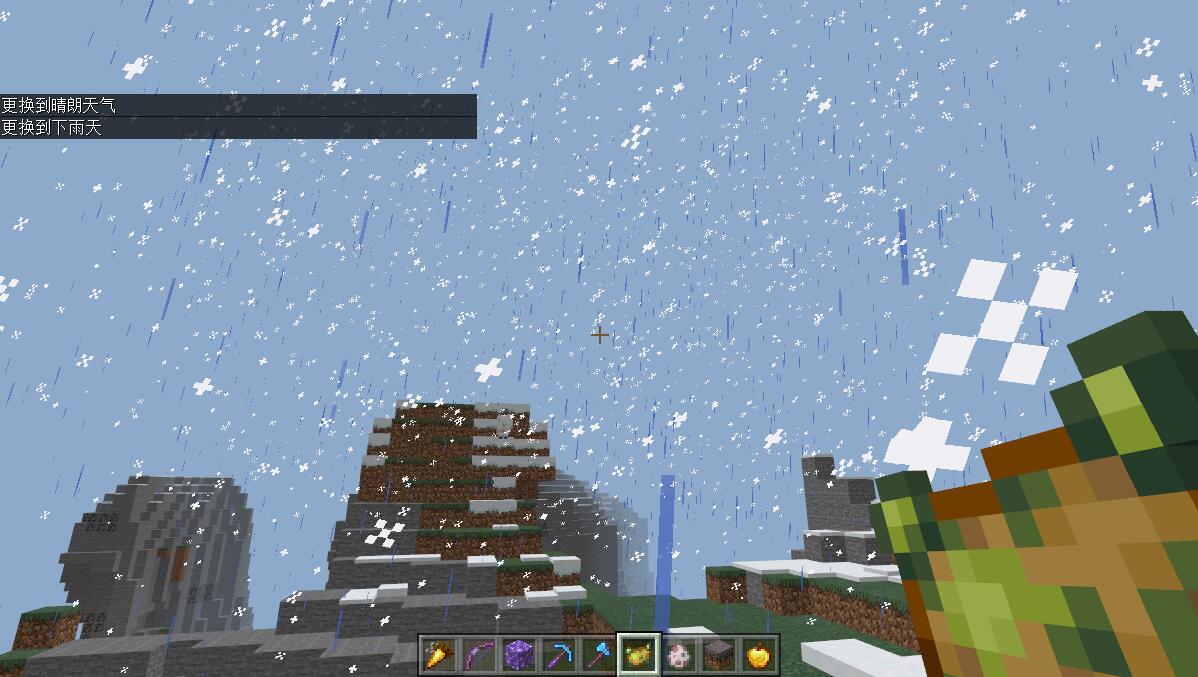 下雪代碼是/weather rain,只能在雪地上使用才能下雪。