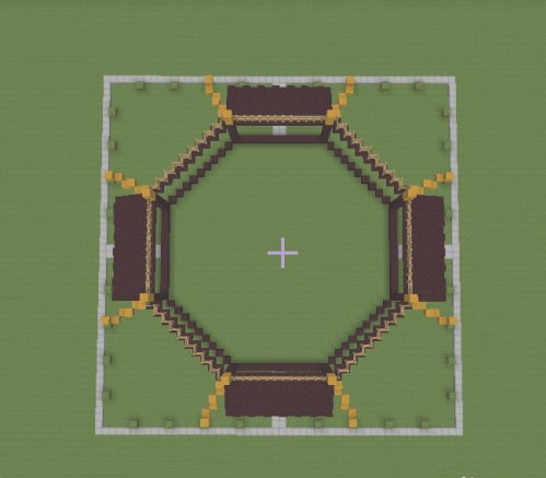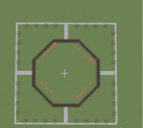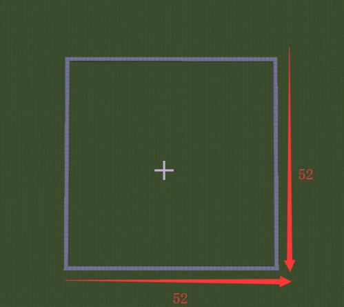 1.首先在空曠的地方用石半磚鋪一個長52格寬52格的正方形區域。