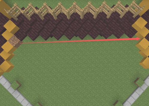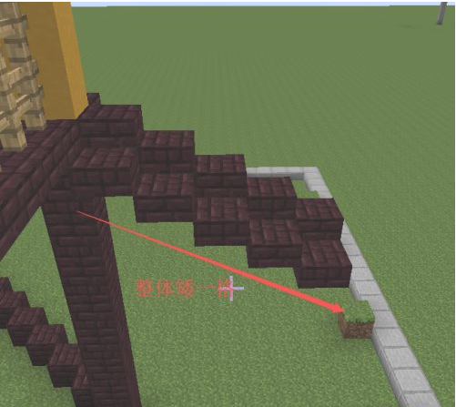 8.緊挨著這個斜坡矮半格再鋪一個斜坡,然後按照這樣的方法一直鋪滿到第二個柱子。四個邊都一樣的做法。