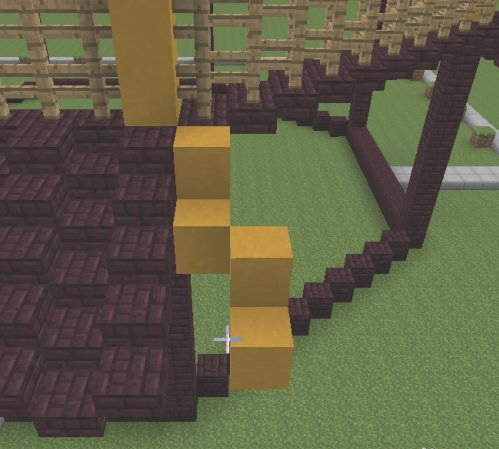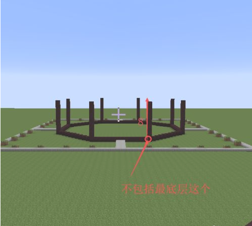 19.然後以黃色柱子為基準向內收一格,向後收三格的位置開始鋪8格高的柱子。