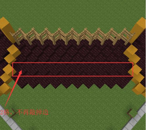 3.在第九格放置兩個地獄磚,分別向兩邊再鋪6格。(4個邊都是一樣的做法。後面我就不細講了,只講一個邊。)