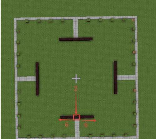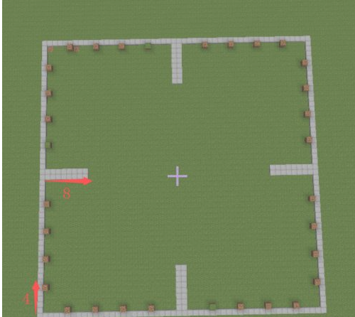 2.然後從邊緣開始數,每隔4格放一個泥土,到第五個的時候改為半磚並放兩個並向內延伸8格。然後從第二個半磚開始數一直數到邊緣,看間隔是否是4格。(如果不是我們可能第一步鋪的邊不是52,立刻排查)。