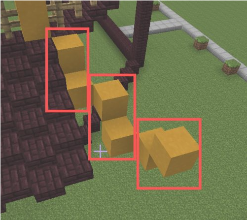 9.在黃色粘土柱向外的一格放兩個黃色粘土,一格高一格低。