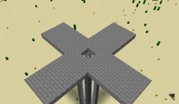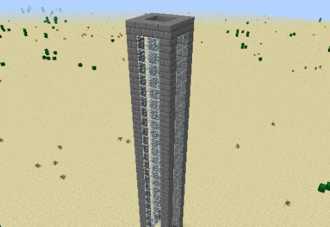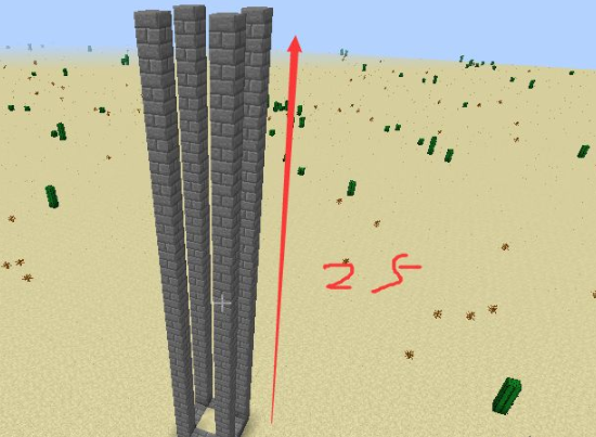 二、建一個24格高的煙囪,因為怪只會在玩家24格外才會刷,如下圖所示;