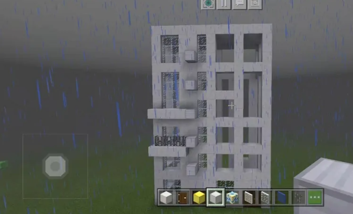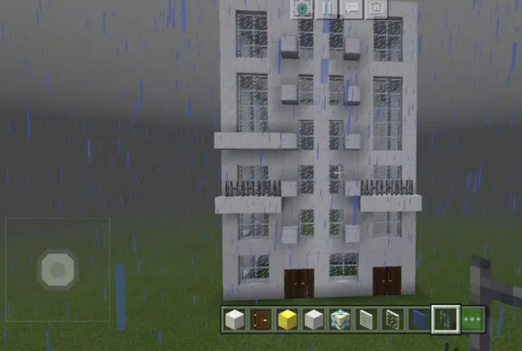 10.然後選擇鐵塊,外觀酷似空調,每隔2格安置一個,這樣左側的樓型就完成了。