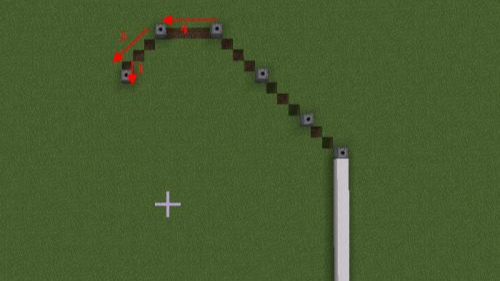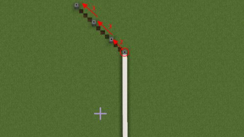 3.第三步以發射器為中心橫向4格位置放發射器,再向斜下方三格,偏移一格的位置放發射器。