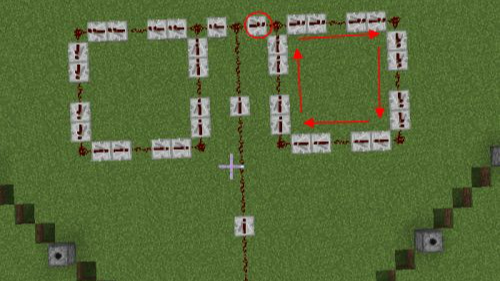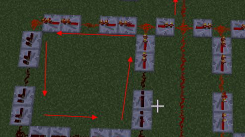 21.第二十一步返回剛才的閉環,把左側的紅石中繼器調轉方向。