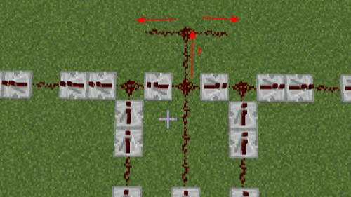 15.第十五步提高兩格鋪上紅石,分別延伸出去。