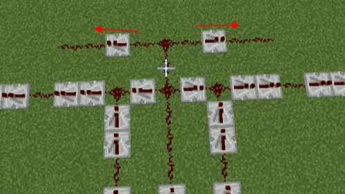 16.第十六步兩邊各放一個紅石中繼器,再用紅石繼續延伸。
