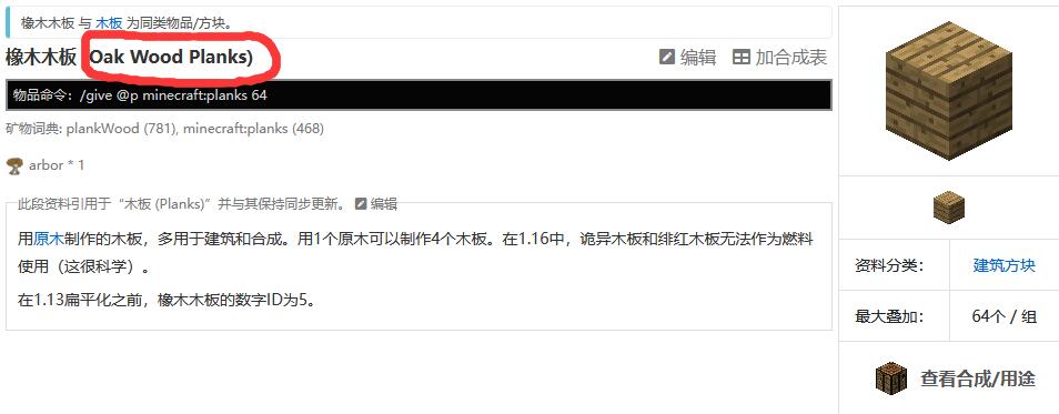 首頁 我的世界 問答 我的世界橡木木板英文名字是什麼? 2022-09-07 橡木木板英文名字是Oak Wood Planks。1,首先我們搜索並進入我的世界橡木木板的相關說明。2,然後就可以在左上角發現木板英文名是Oak Wood Planks了。