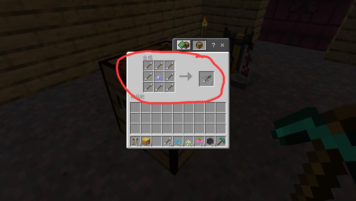 2,然後在工作台中間放一瓶滯留型藥水,周圍放上弓箭就可以合成藥水箭了。