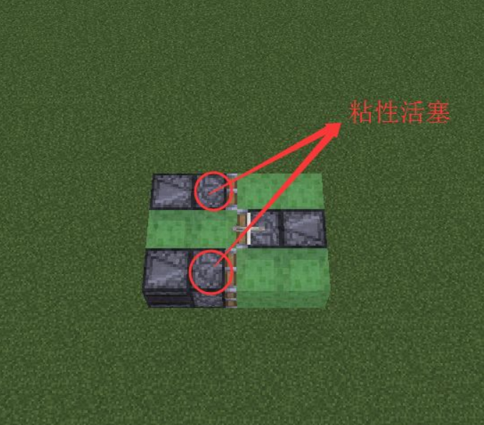 1、確定好高度後,放置活塞並在活塞的前方放兩個粘液塊。