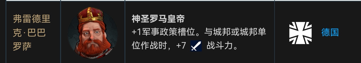 首頁 文明6 問答 文明6統治勝利哪個國家好用? 2022-09-09 文明6中想要統治勝利選擇德國領袖弗雷德里巴巴羅薩是非常不錯的無論是前期還是後期的城邦對戰,德國的特色能力 1軍事政策槽位和對城邦單位作戰加攻擊力對於統治勝利非常有幫助。