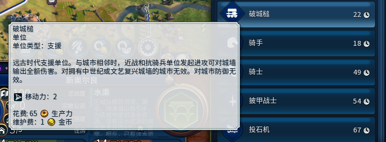 游戲中叫破城錘,文明6的攻城錘會讓相鄰單元格上的近戰單位對城牆造成全額傷害,作為支援類型的攻城單位攻城錘是無法主動發起攻擊的。