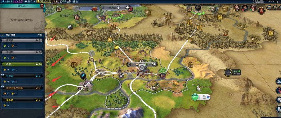 首頁 文明6 問答 文明6商人怎麼創建貿易路線? 2022-09-09 1.在遊戲「文明6」中,先研究對外貿易分支,研究完畢就會擁有一條貿易線路。2.然後點擊商人就設置貿易路線了,根據每條路線的能獲得收益選擇適合自己的路線。3.選中路線之後點擊開始貿易,商人就可以開始貿易了。