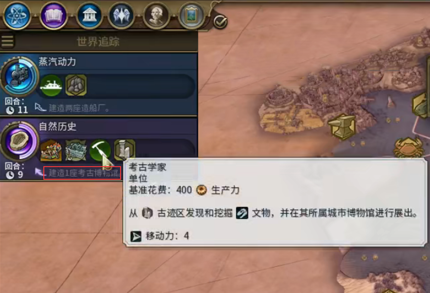 在文明6遊戲中,玩家需要在建造考古博物館之後才能夠獲得考古學家,考古學家能夠從古跡區發現和挖掘文物,並在其所屬城市博物館進行展出。