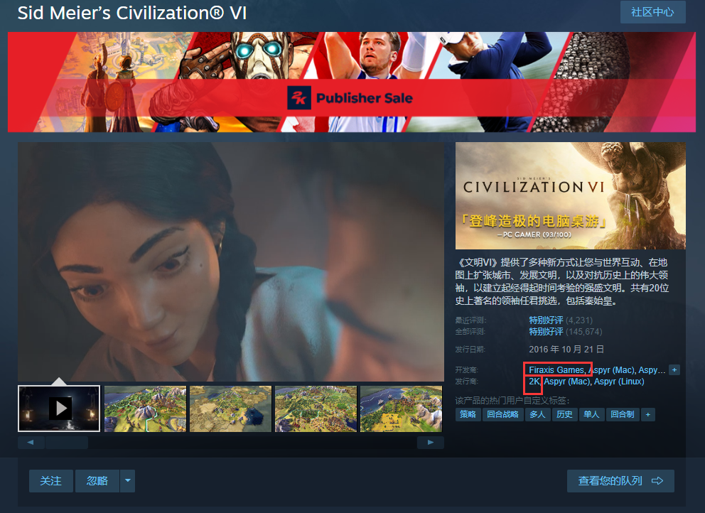 1、文明6開發者是Firaxis Games,由2K Games發行的一款歷史策略回合制遊戲。2、文明6在steam上的名字叫 Sid Meier's Civilization VI 。