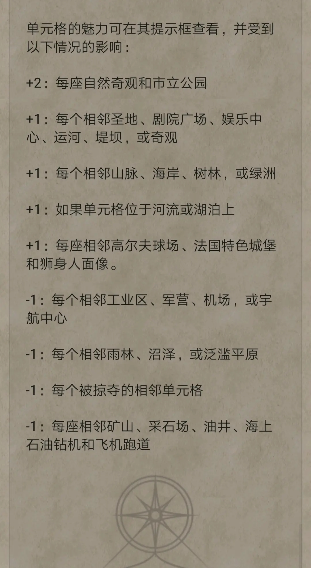 首頁 文明6 問答 文明6魅力值怎麼計算? 2022-09-10 單元格魅力由周圍單元格決定,可相互疊加。再補充個烏盧魯加4,山脈4點魅力。魅力在探路中的應用主要是在山脈附近,通過對附近單元格魅力的查看來避免狗走入死衚衕。